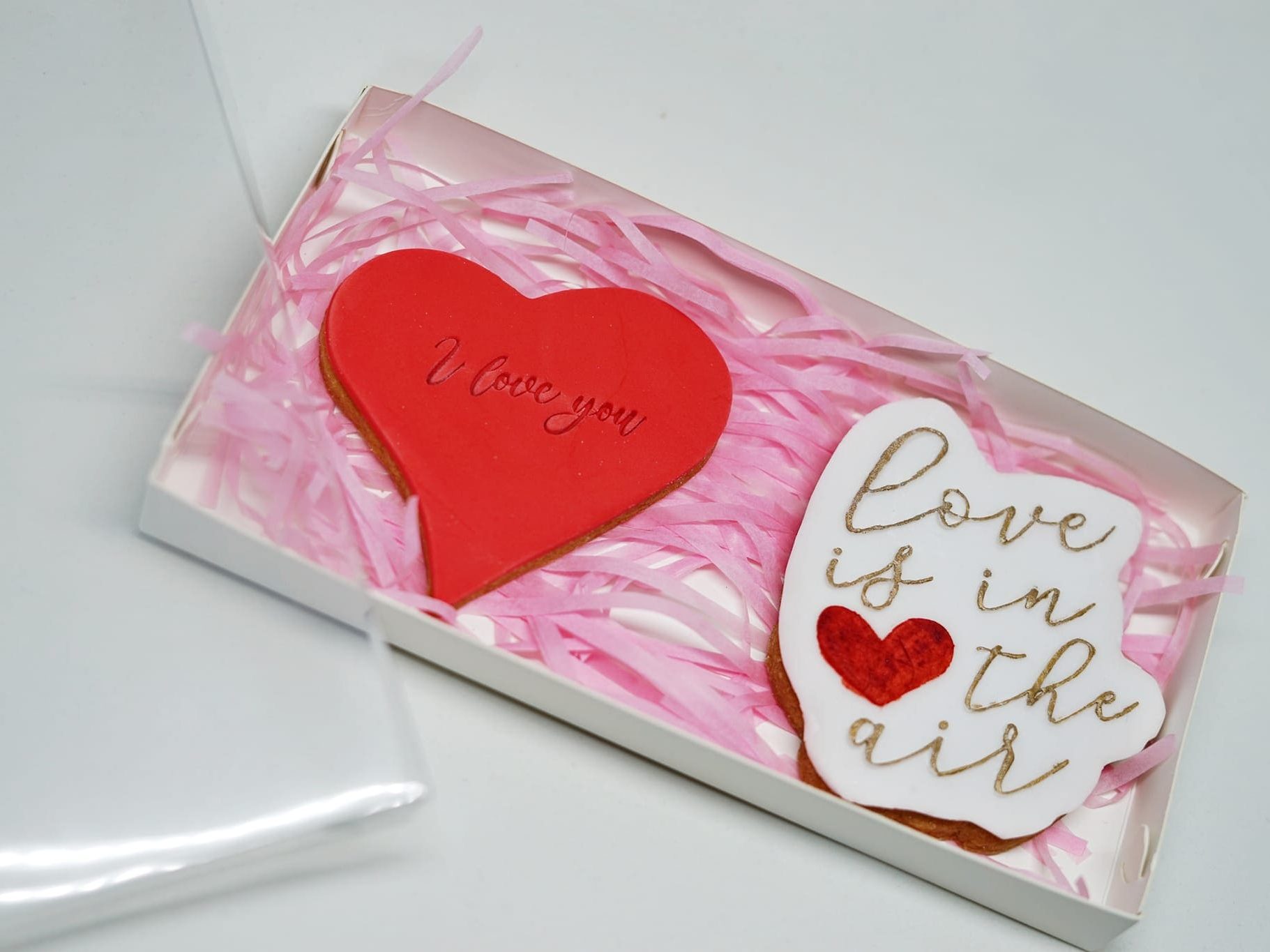 Each cookie is beautifully handcrafted and adorned with romantic designs, from delicate hearts to sweet messages. Made with the finest ingredients and a dash of love, these cookies are the perfect way to express your affection.